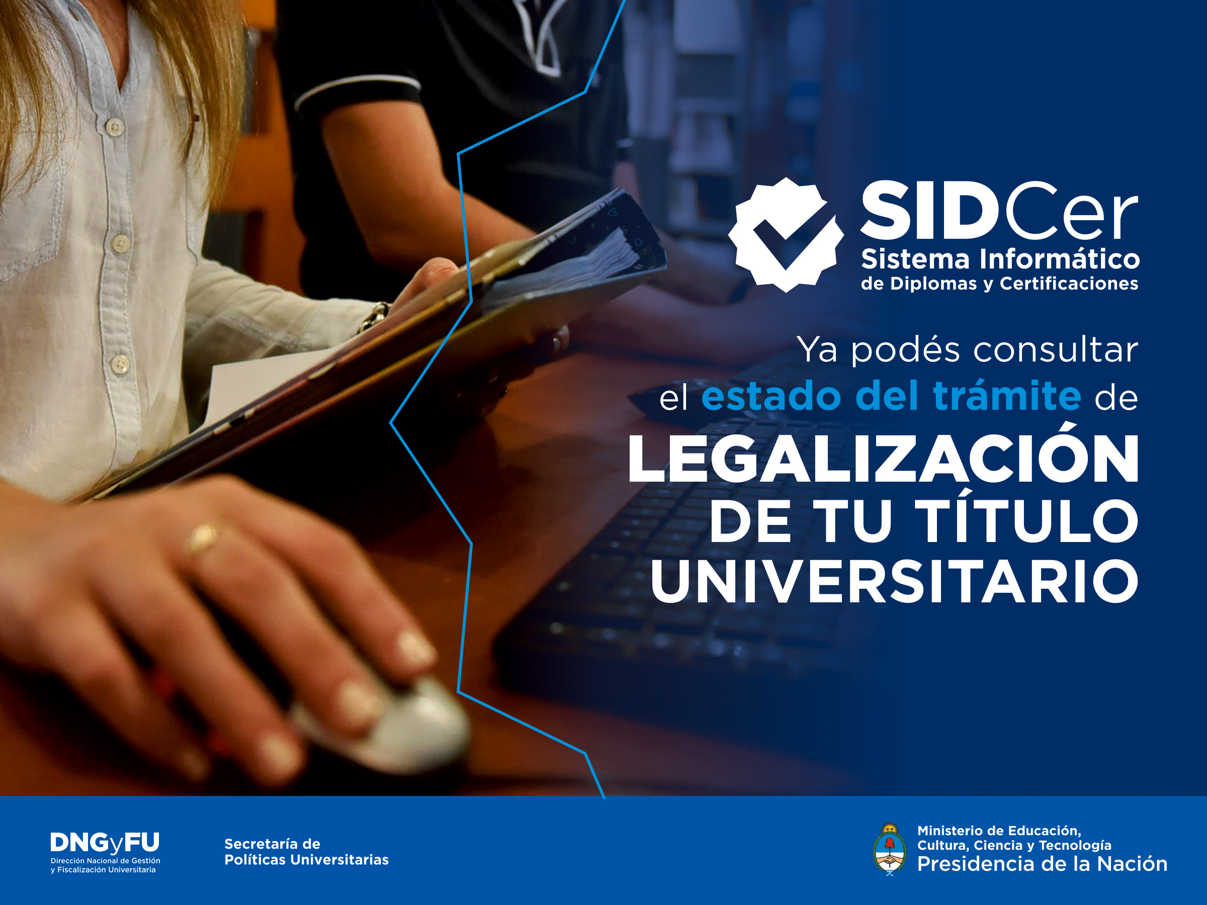 Una buena noticia para los egresados universitarios: a partir de este mes podrán realizar un seguimiento del estado del trámite de legalización de su certificado o diploma universitario de manera online, a través del Sistema Informático de Diplomas y Certificaciones, https://sidcer.siu.edu.ar/